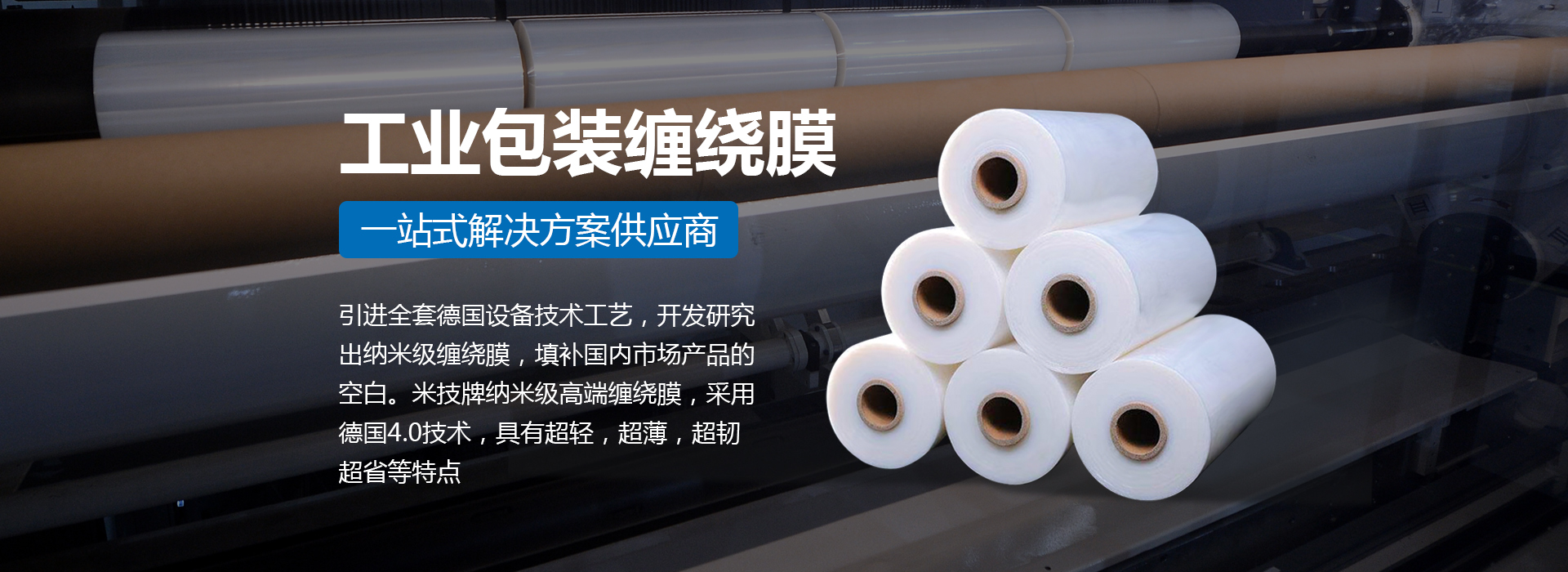 引進(jìn)全套德國設(shè)備技術(shù)工藝,開發(fā)研究出納米級纏繞膜,填補(bǔ)國內(nèi)市場產(chǎn)品的空白。米技牌納米級高端纏繞膜,采用德國4.0技術(shù),具有超輕,超薄,超韌,超省等特點。